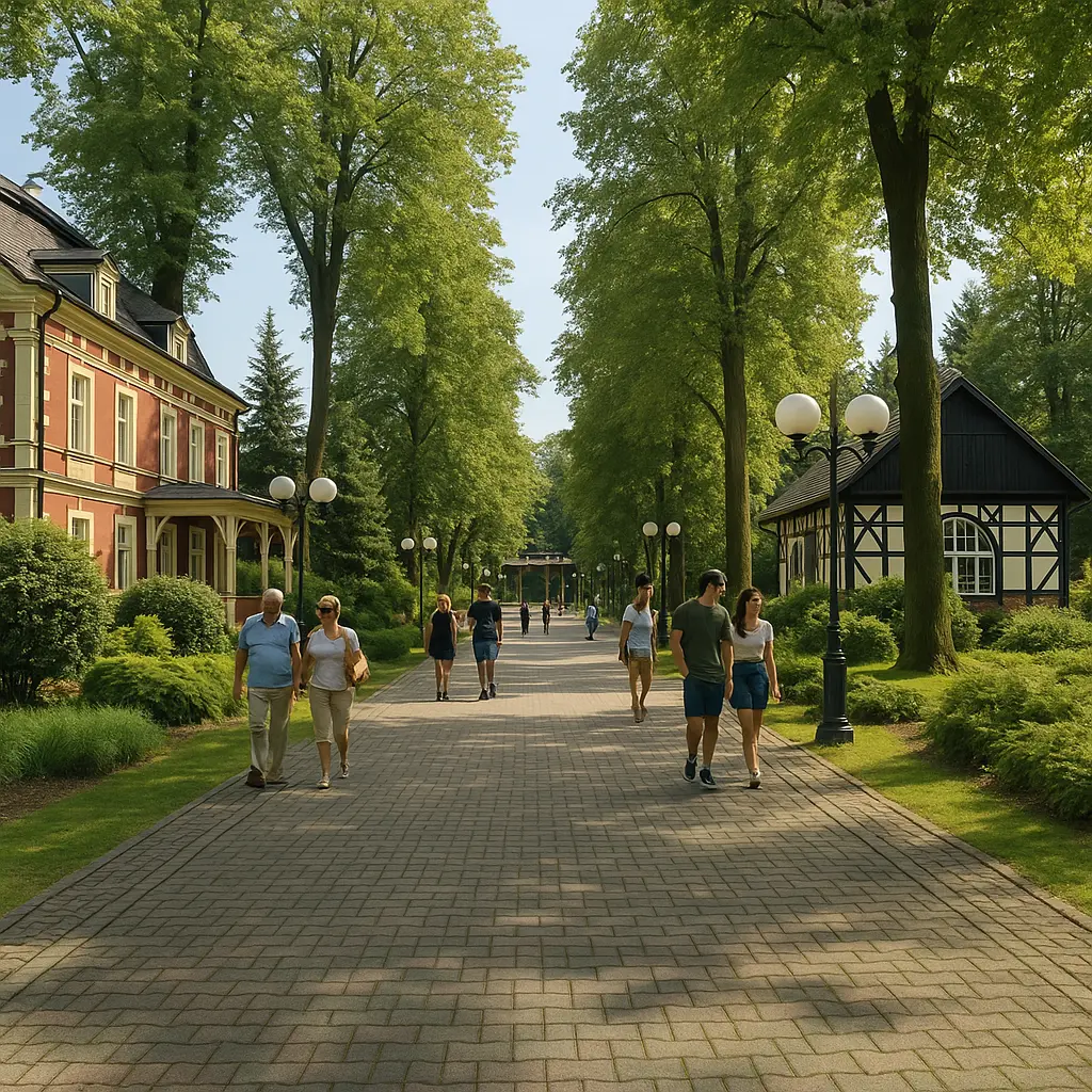 Finał w Goczałkowicach-Zdroju. Deptak, który aż się prosi o slow walk. Zieleń, stylowe ławki, a do tego Weranda – kawiarnia, gdzie kawa smakuje jak wakacje, a sernik jak pierwsze zauroczenie.